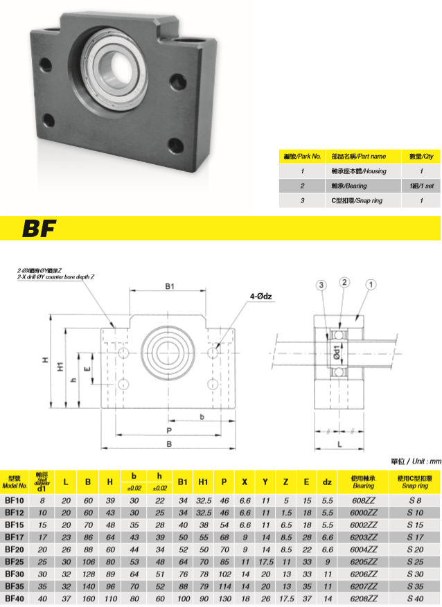 支撐座是在絲杠和螺母之間以滾珠為滾動體的螺旋傳動元件,固定側的支撐單元裝有經預壓調整的JIS5級的角接觸球軸承,支撐側的支撐單元使用深溝球軸承,它是一種精密、高效率、高剛度、高壽命且具有穩(wěn)定的回轉性能的先進傳動元件,可將電動機的旋轉運動轉化為工作臺的直線運動,常見系列為BK、BF、EK、EF、FK、FF等。