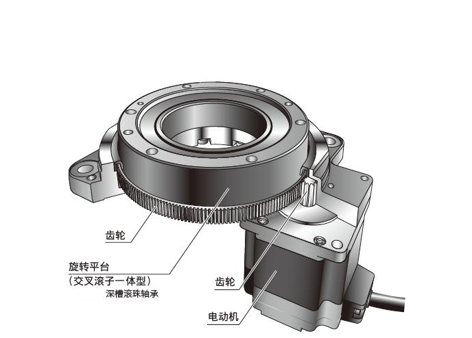 伺服旋轉(zhuǎn)平臺(tái)的轉(zhuǎn)盤(pán)由一套精密交叉滾子軸承支撐,軸承中的滾子呈90度交錯(cuò)排列,并且滾子直徑略大于軸承內(nèi)圈與外圈間的滾道尺寸,使得交叉滾子軸承的內(nèi)外圈及滾子之間存在預(yù)緊力,由此軸承支撐的伺服旋轉(zhuǎn)平臺(tái)轉(zhuǎn)盤(pán)能夠承受徑向、軸向、傾覆等各種力矩,其剛性是傳統(tǒng)軸承的10倍以上。